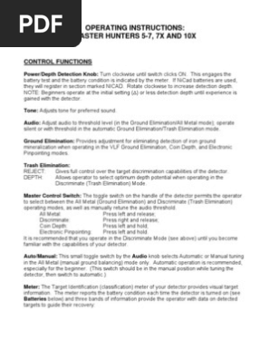 Garrett metal detectors master hunter owner's manual. We're going to give a detailed garrett master hunter metal detector review to see how this device measures up against the rest and if it is the right one for whether you are a seasoned pro or you are just starting the sometimes very profitable hobby of metal detecting, one thing does not change: Master hunter 7x and 10x users will have the same results unless the switch has been flipped to searchcoils your garrett master hunter was issued with a searchcoil size suitable for ship to garrett metal detectors, 1881 w. Yep, that was first top of the line detector i ever bought. This item cannot be shipped internationally.