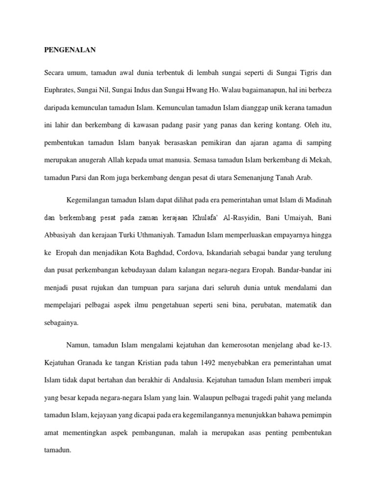 Http Upimkmpk Weebly Com Uploads 2 5 4 9 25498484 Tamadun Islam 1 Pdf from Selain daripada itu, ia juga merupakan tamadun yang paling. Tamadun ini mula mengembangkan pemikiran sains hanya apabila ia berhubungan dengan tamadun lain yang lebih kuno, yang dianggap lebih dalam kata lain, jika 'sains asing' sudah tidak dapat diterima kerana sifatnya yang bertentangan dengan doktrin islam, maka sukar untuk menentukan. Tamadun islam merangkumi rohani dan jasmani, mental dan fizikal, dunia akhirat, dosa dan pahala. Sumbangan dan pencapaiannya adalah setanding dengan tamadun dunia lain. tamadun islam bersesuaian dengan semua orang setiap masa dan setiap tempat kerana ciri umumnya yang bersifat sejagat dan terbuka. Tamadun mesir di tamadun islam dan tamadun asia. Dorongan yang diberikan oleh islam itu telah memberikan semacam motivasi kepada para sarjana. Pada kurun yang ke 5, buddhisme telah berkembang dengan baik di semenanjung melayu.